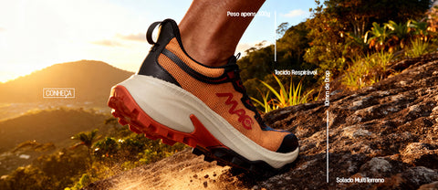 Para quem busca aventura. Botas que agarram, respiram e acompanham o terreno.